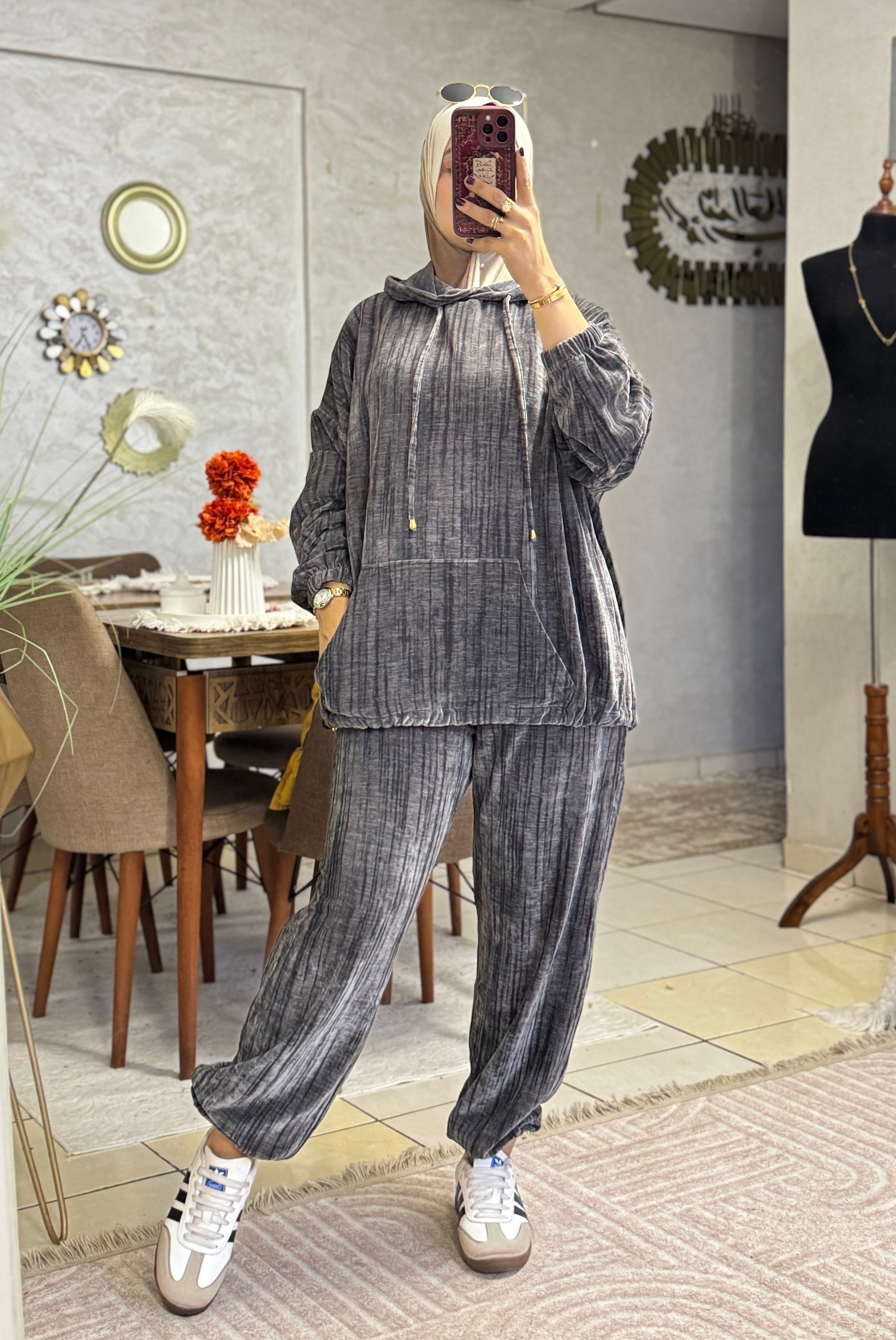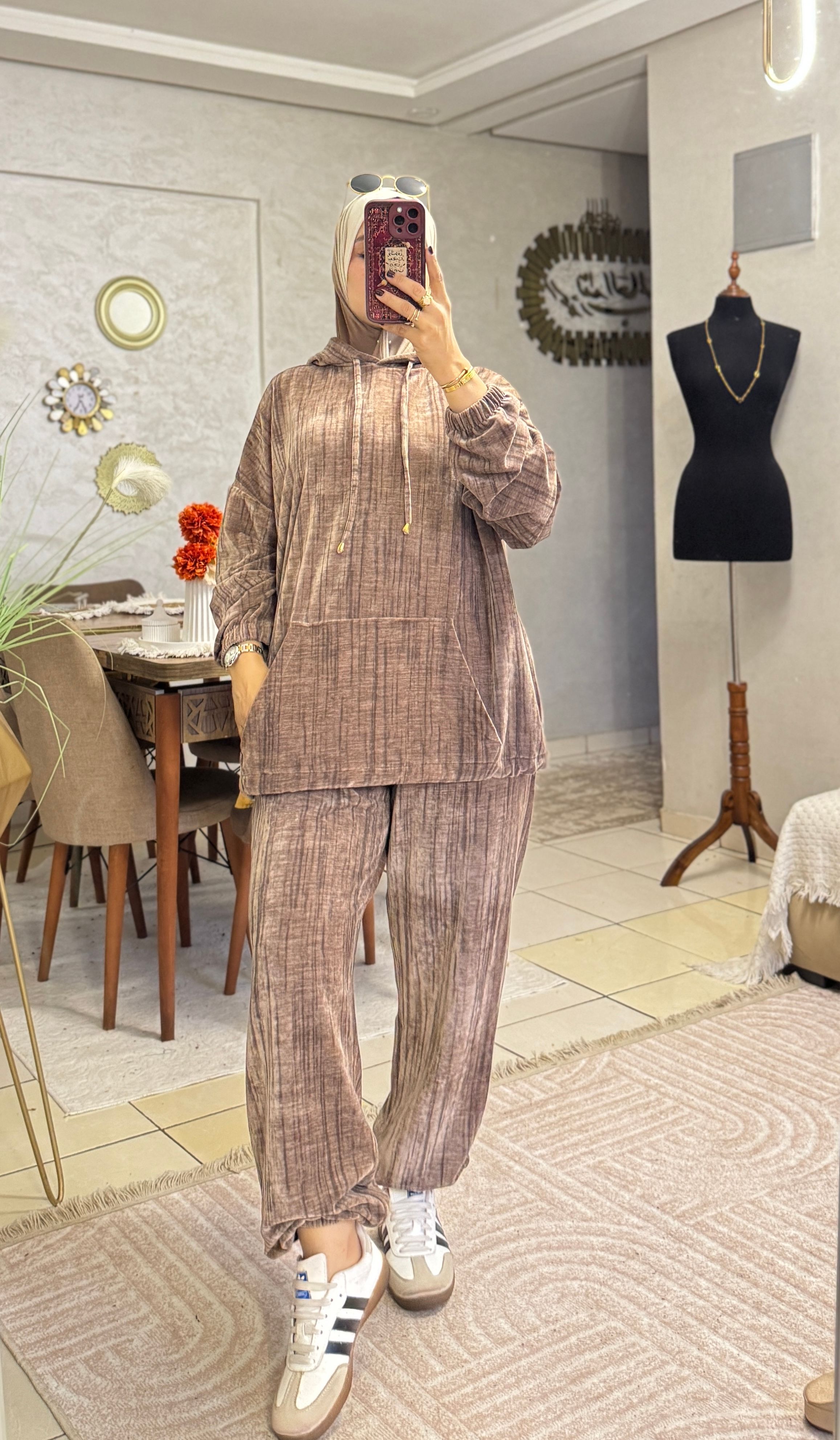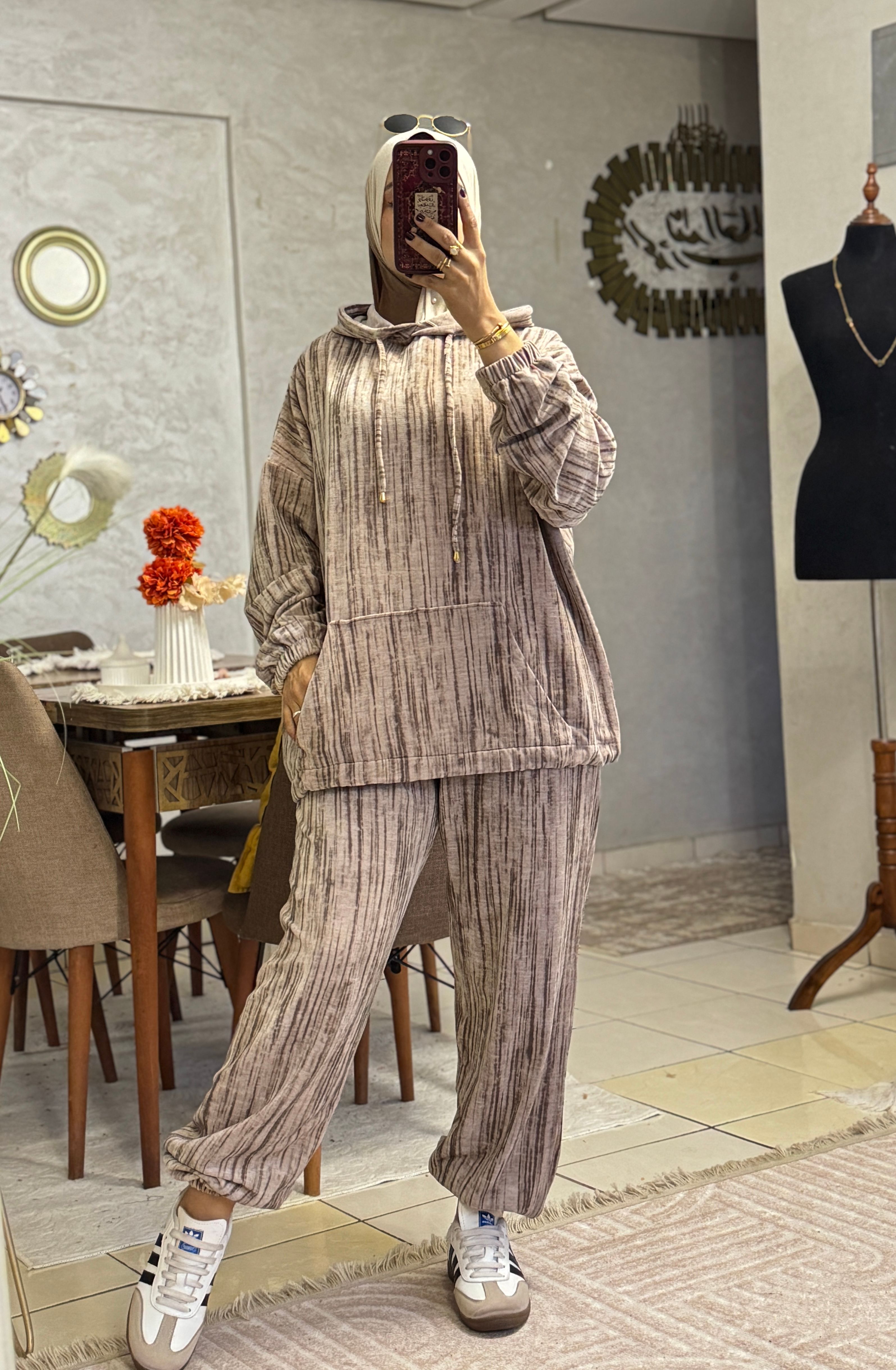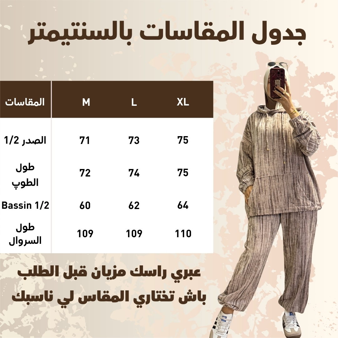 هاد أونسومبل مصنوع من قماش Mobra المعروف بخفته ونعومته اللي كيعطي إحساس دافئ ومريح طول النهار 🌤️