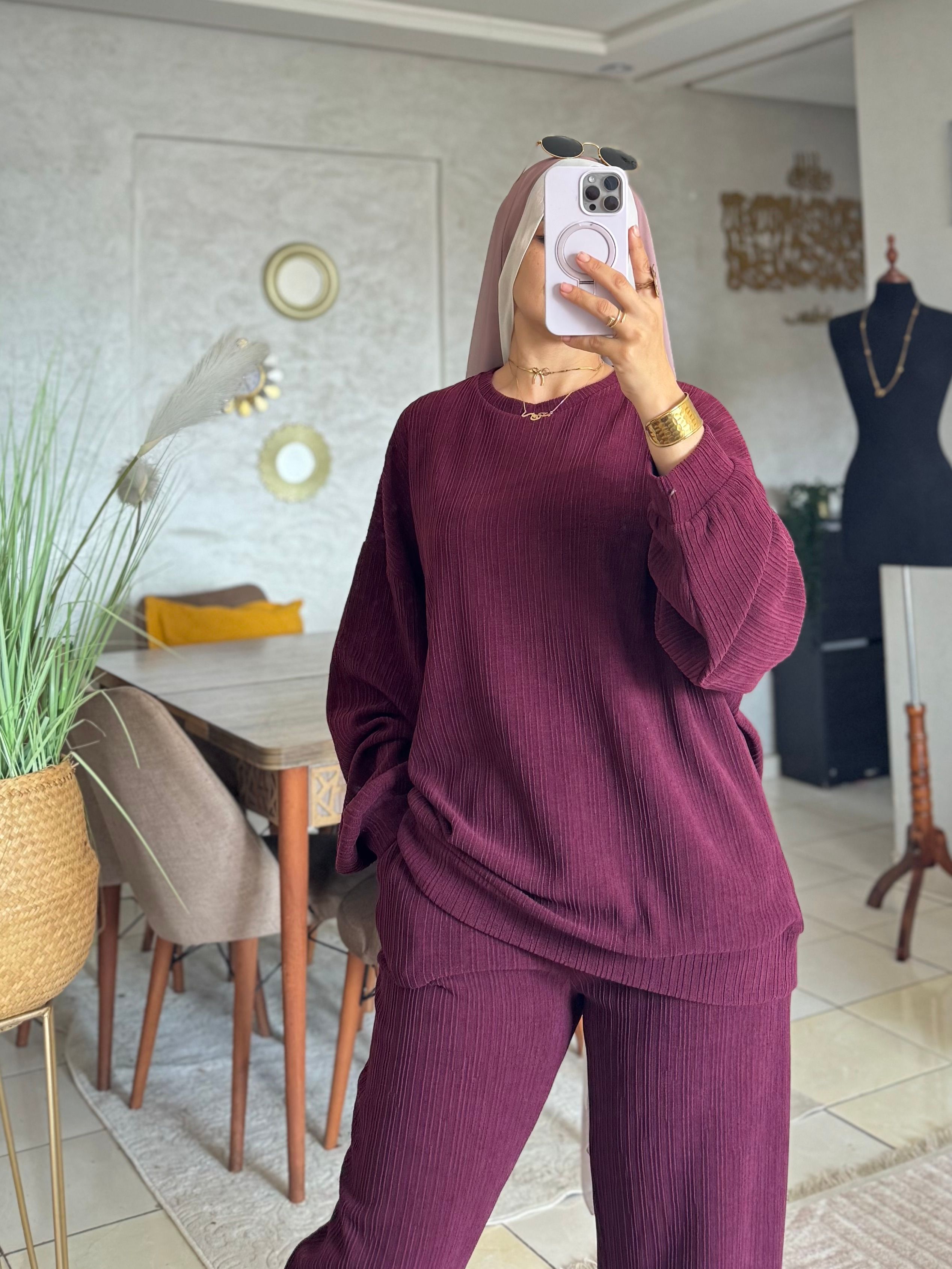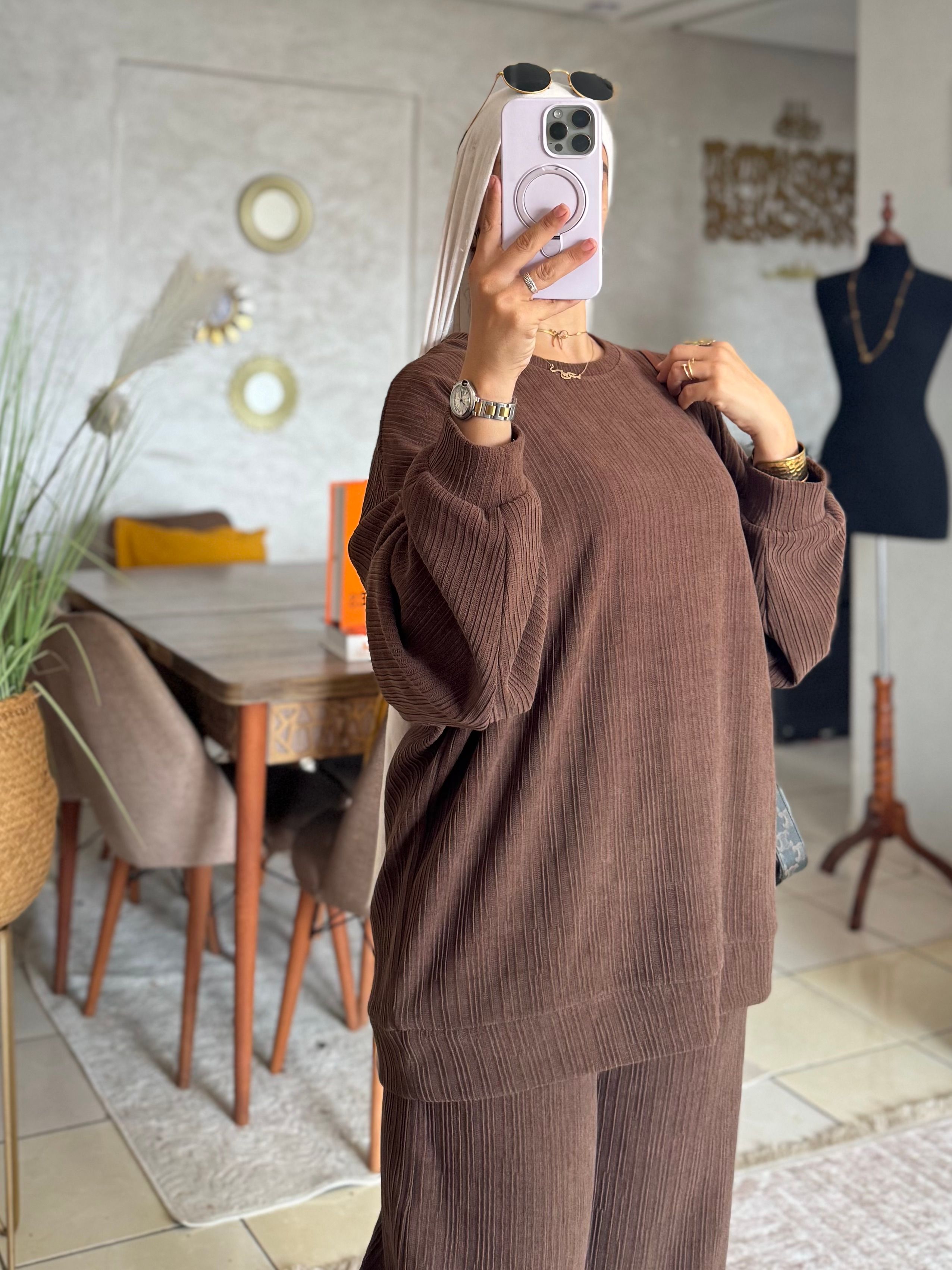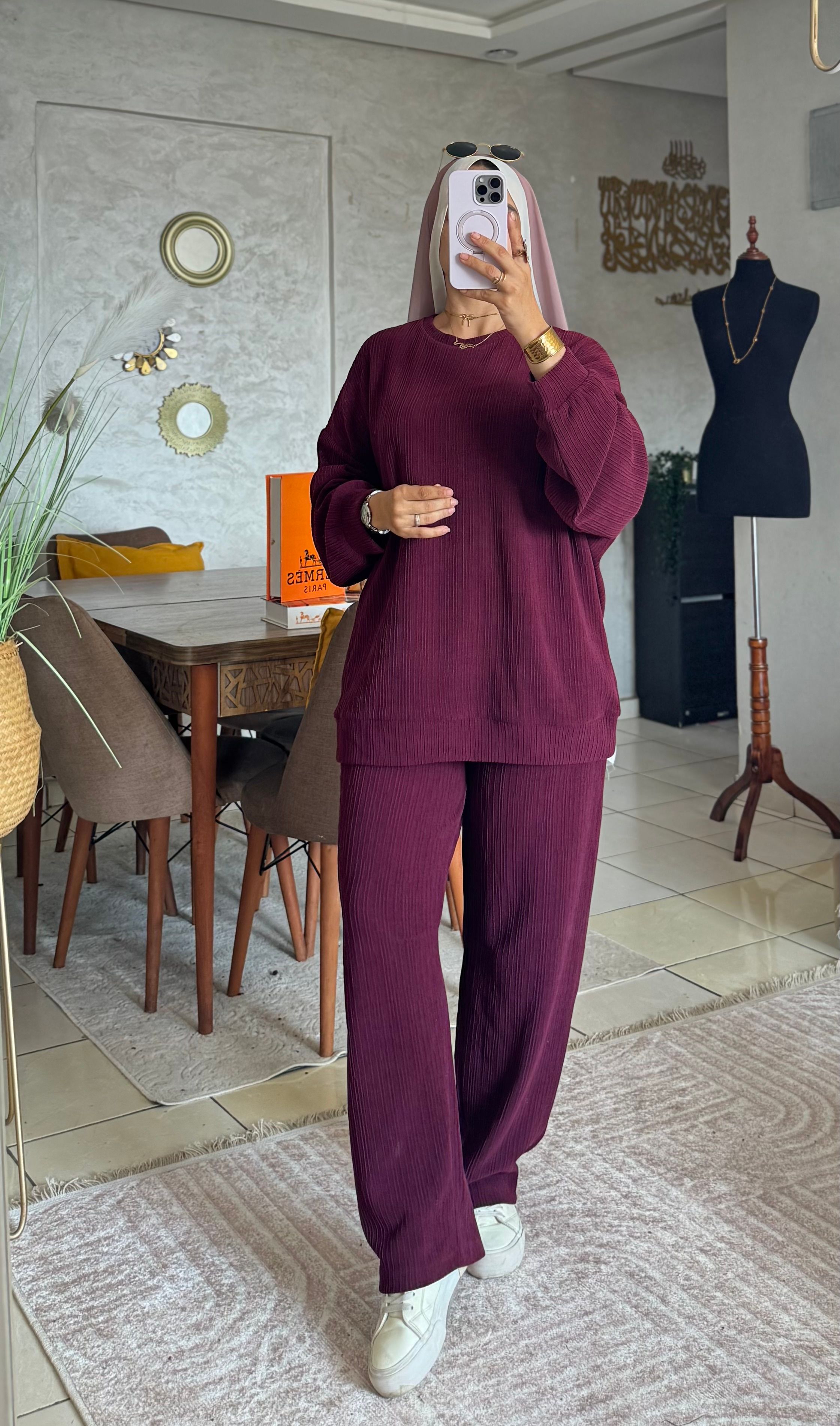 جاي من ثوب صوفا جاكار الطبيعي، وخادمينه بطريقة عصرية باش يعطيك راحة فالحركة وكلاس فاللبسة.الطقم.