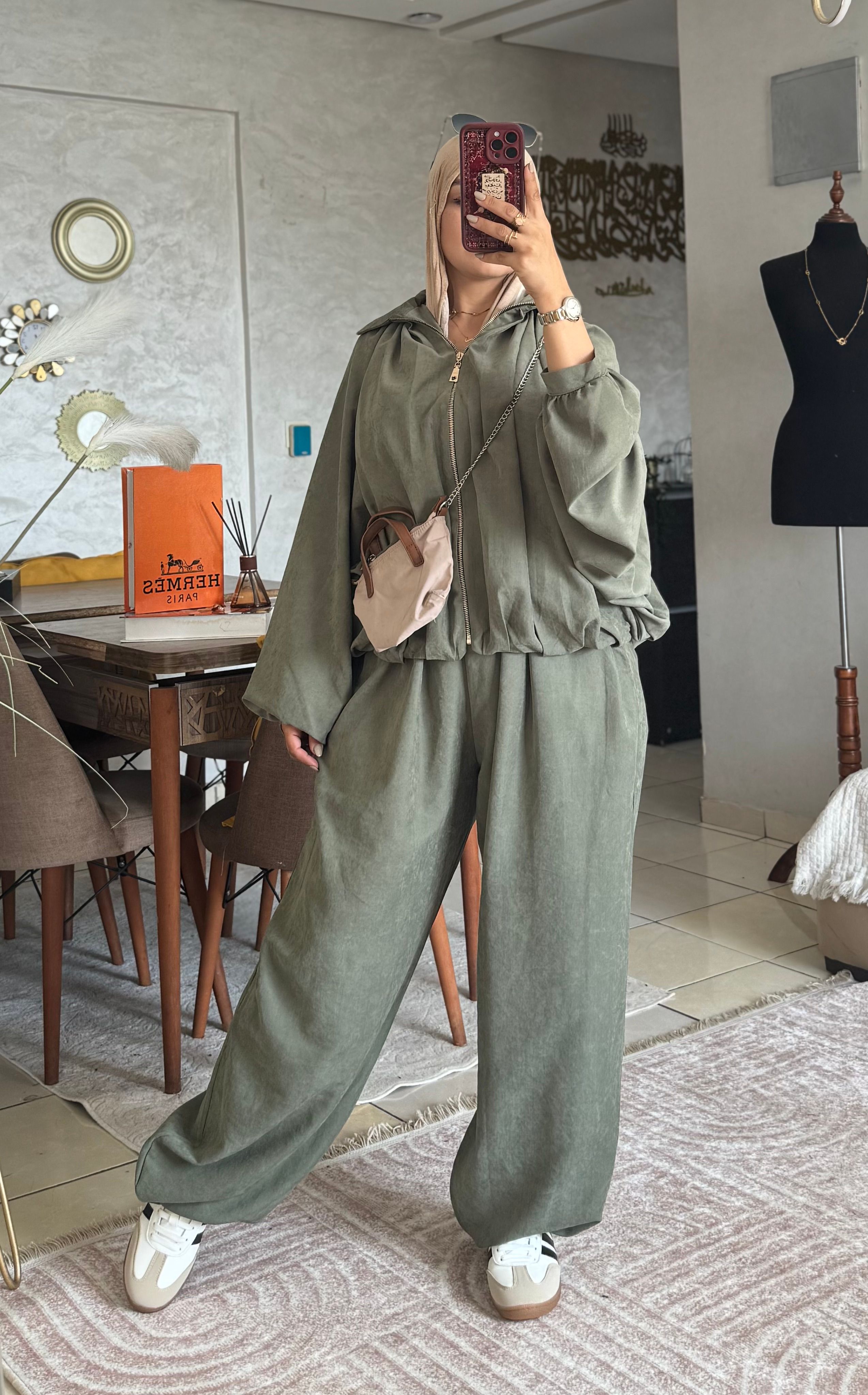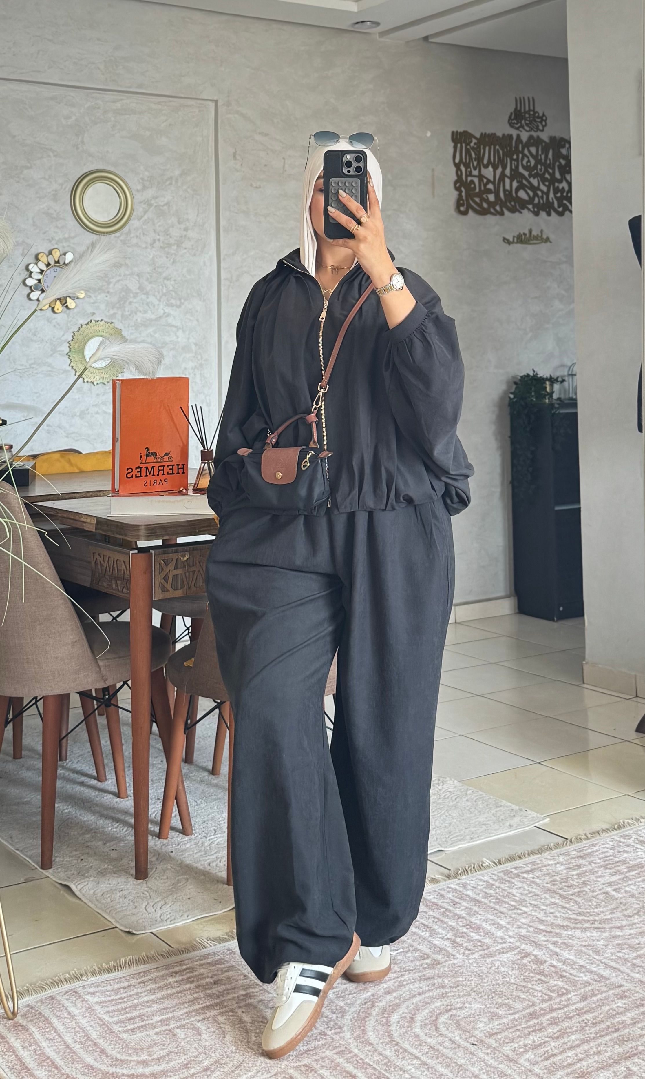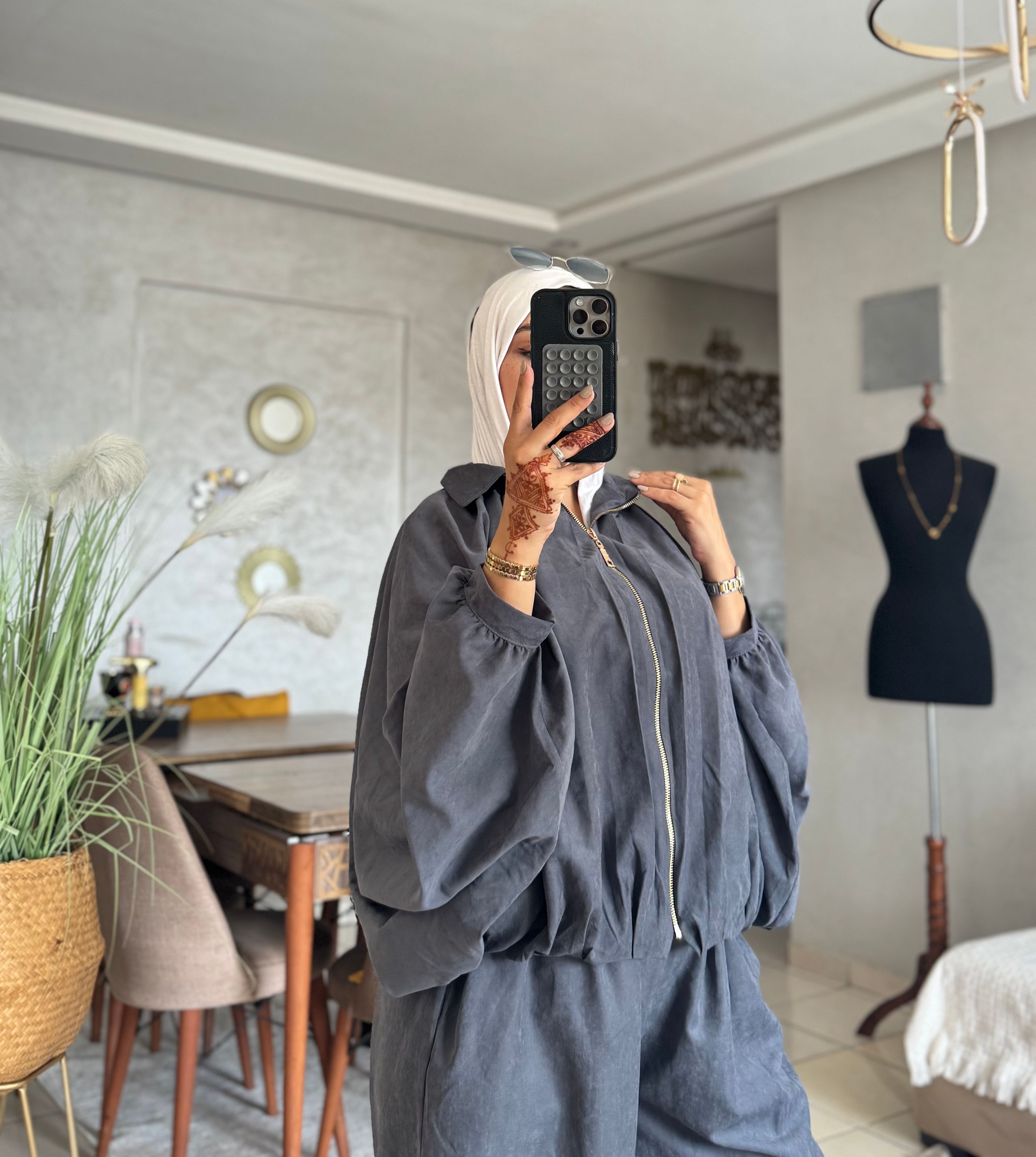 جاي من ثوب فودان مستورد من تركيا، وخادمينه بطريقة عصرية باش يعطيك راحة فالحركة وكلاس فاللبسة.الطقم.
