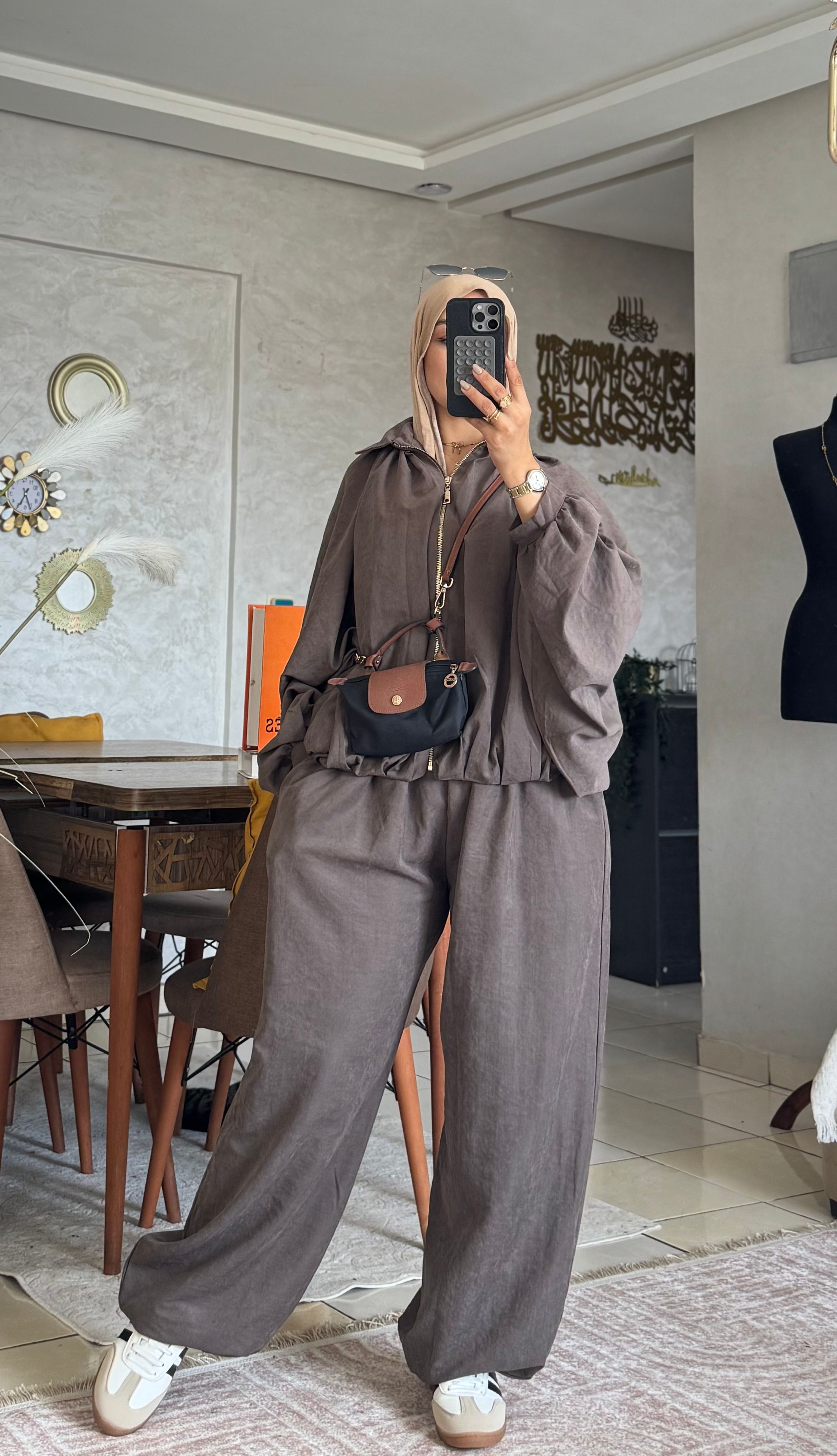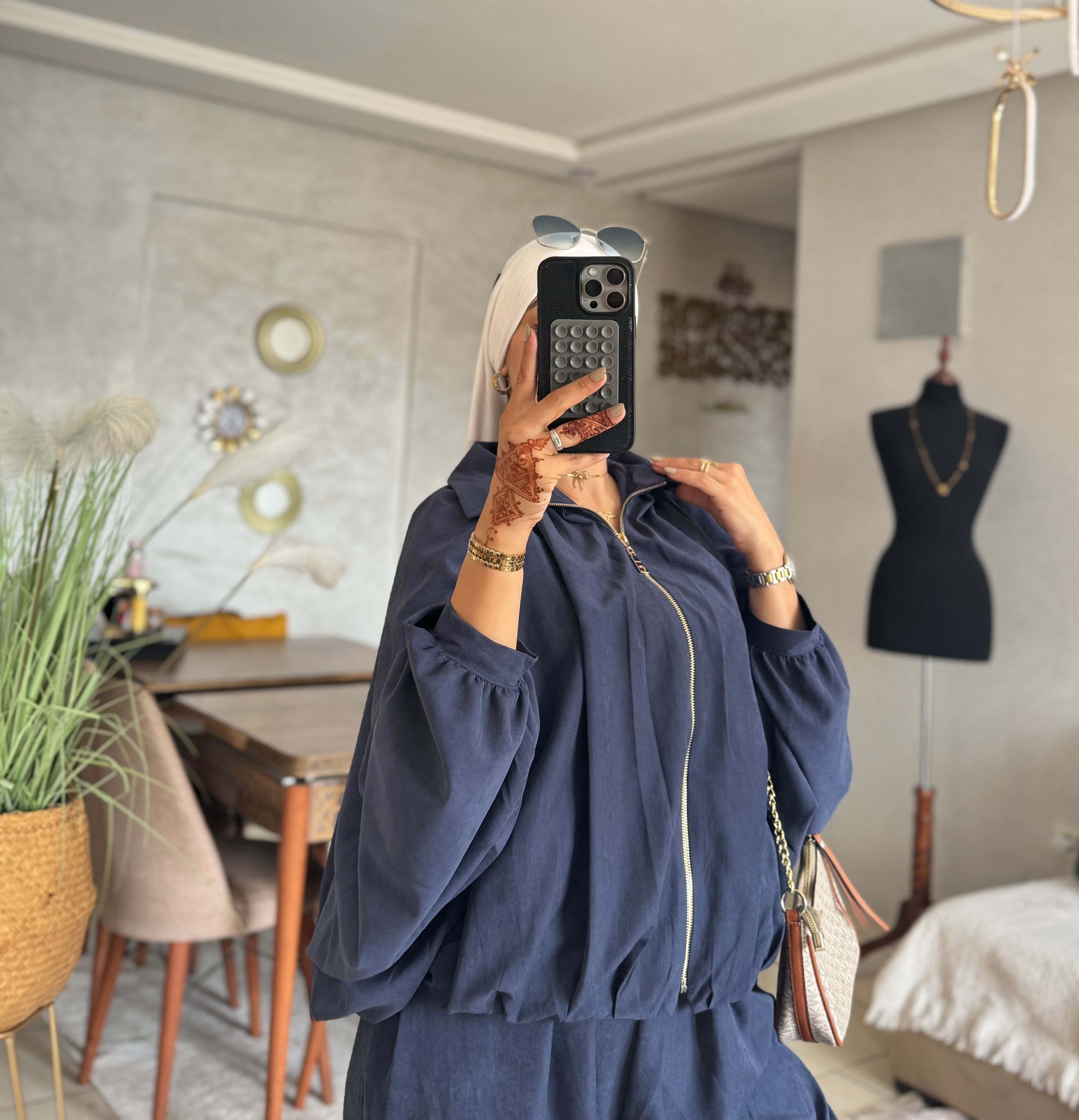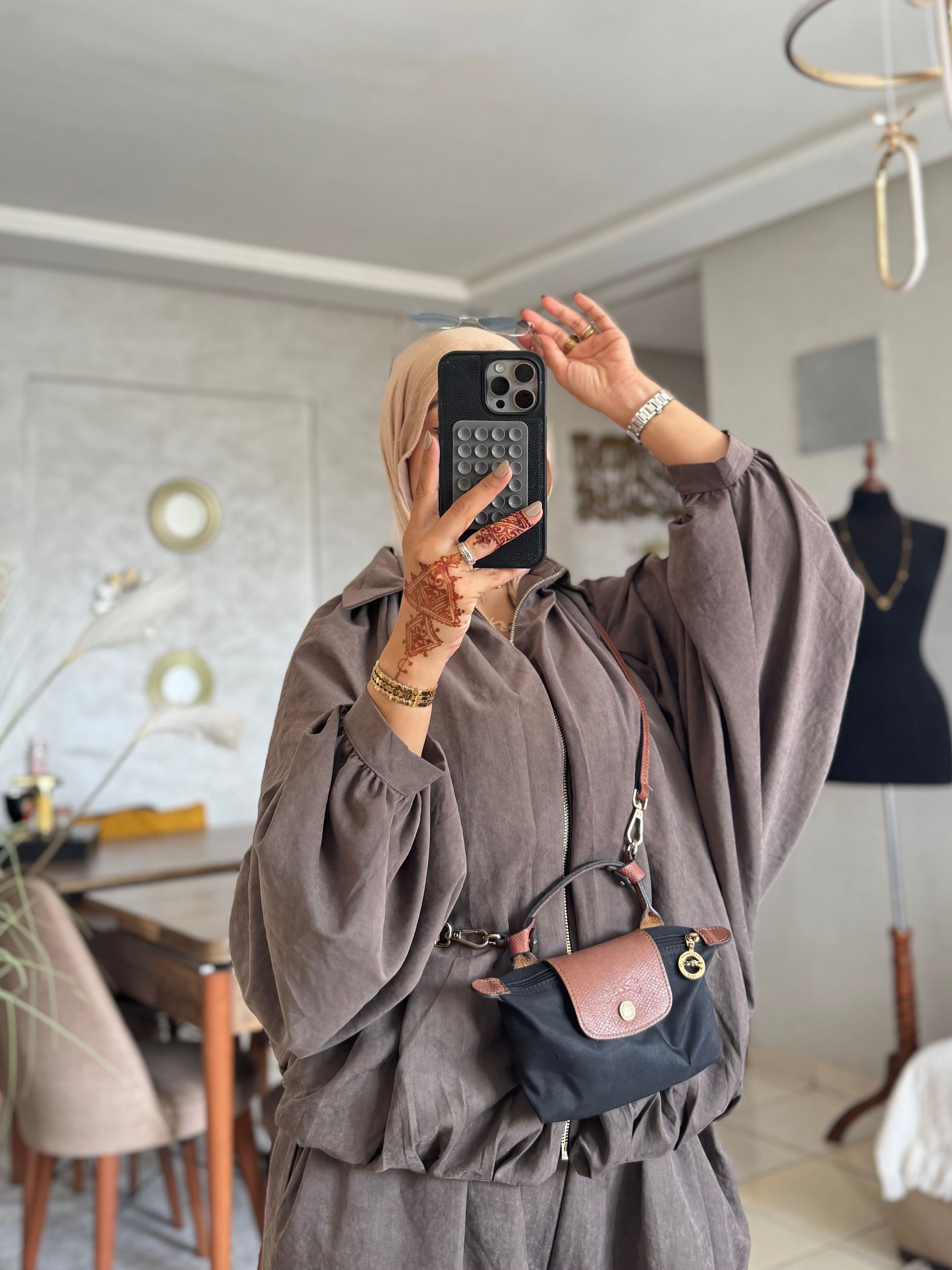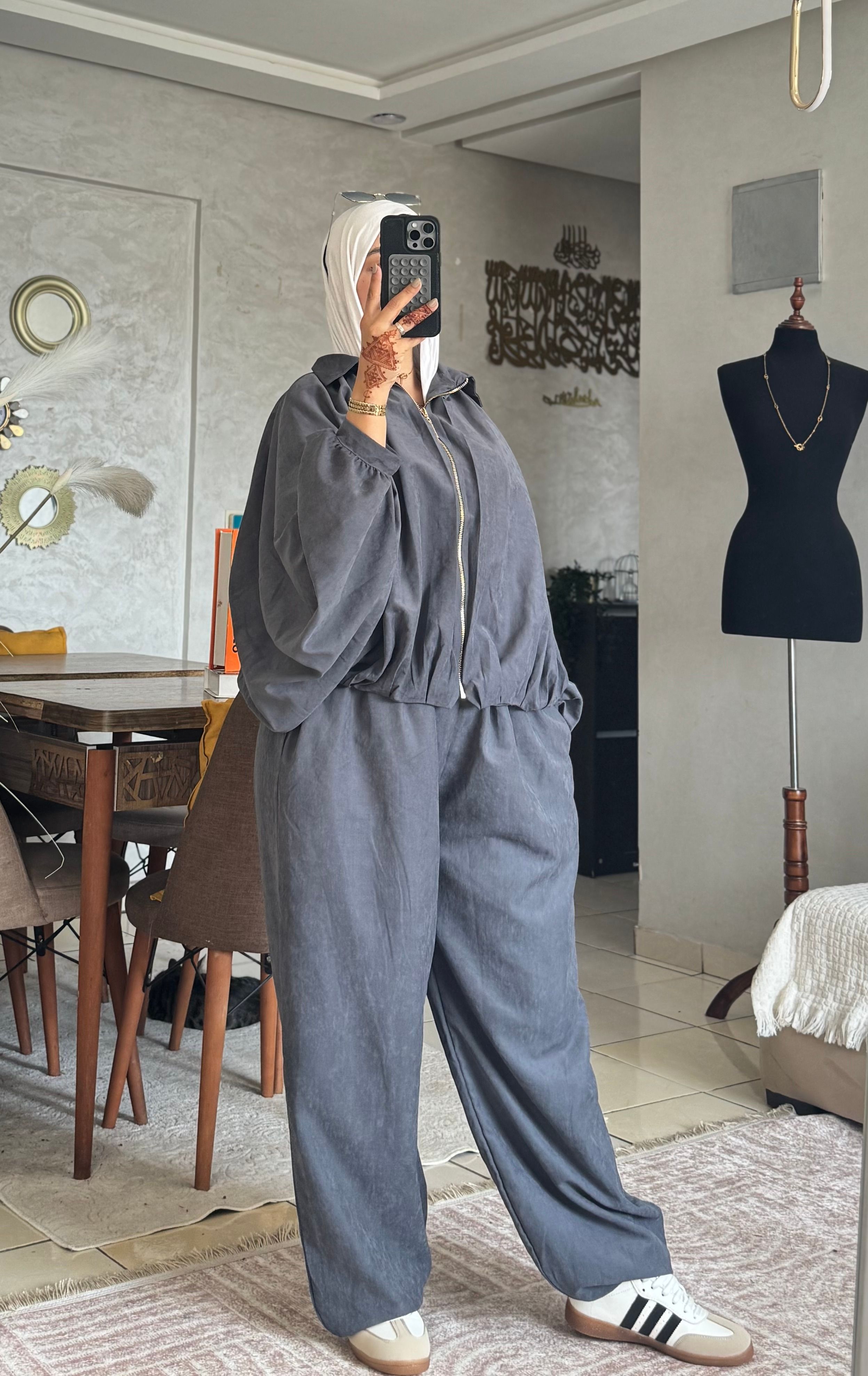 جاي من ثوب فودان مستورد من تركيا، وخادمينه بطريقة عصرية باش يعطيك راحة فالحركة وكلاس فاللبسة.الطقم.