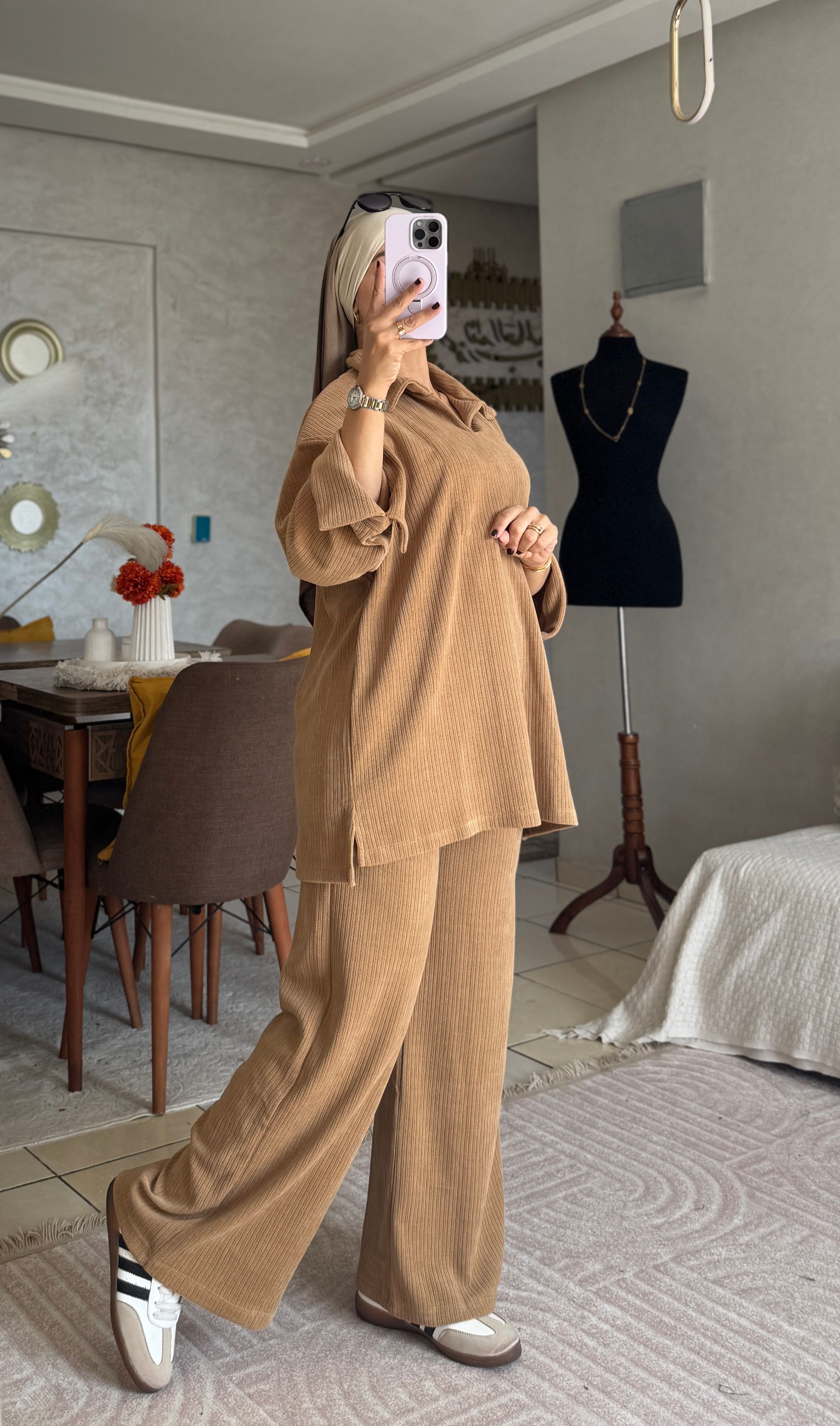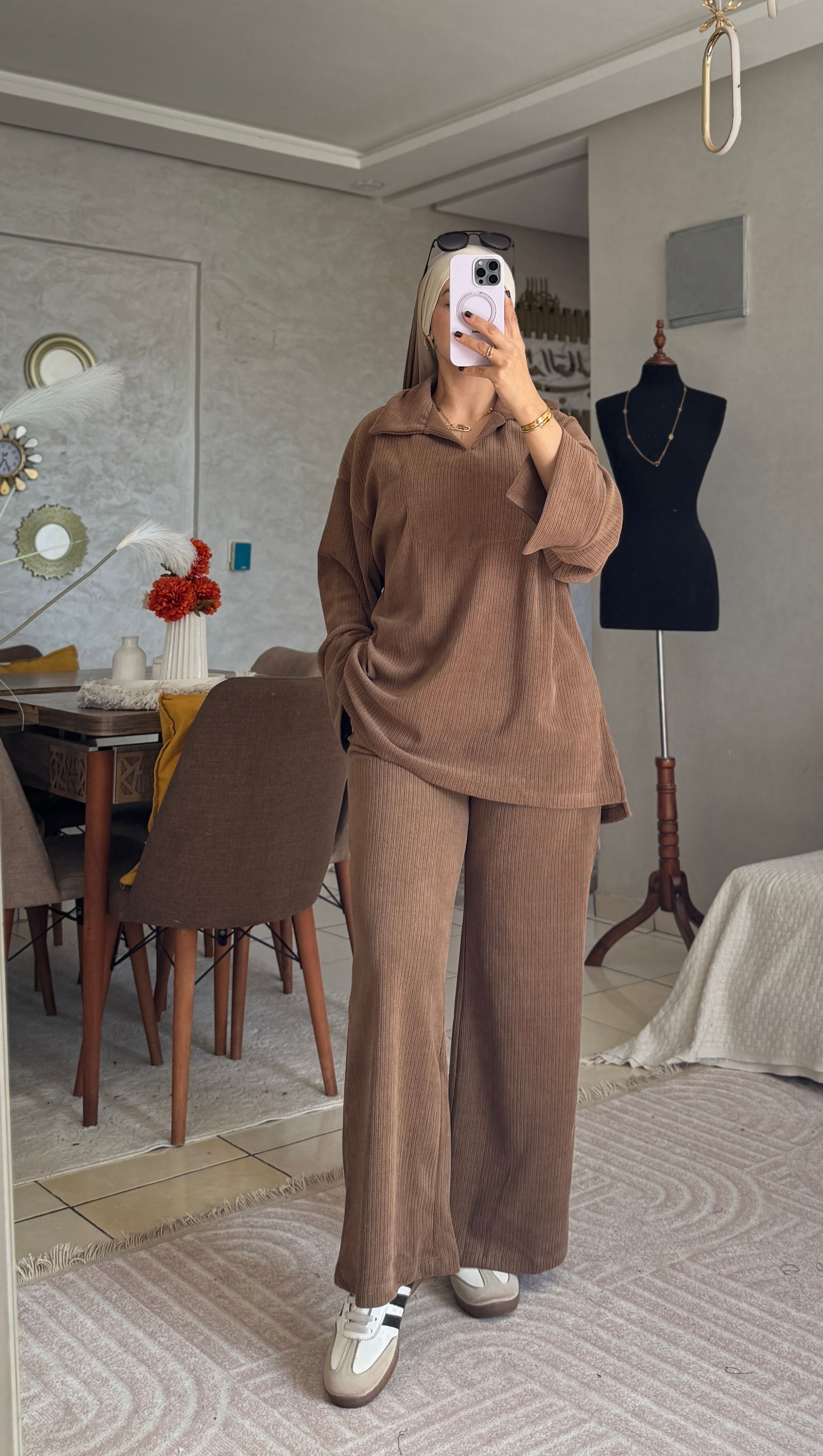 جاي من ثوب صوفا جاكار الطبيعي، وخادمينه بطريقة عصرية باش يعطيك راحة فالحركة وكلاس فاللبسة.الطقم.