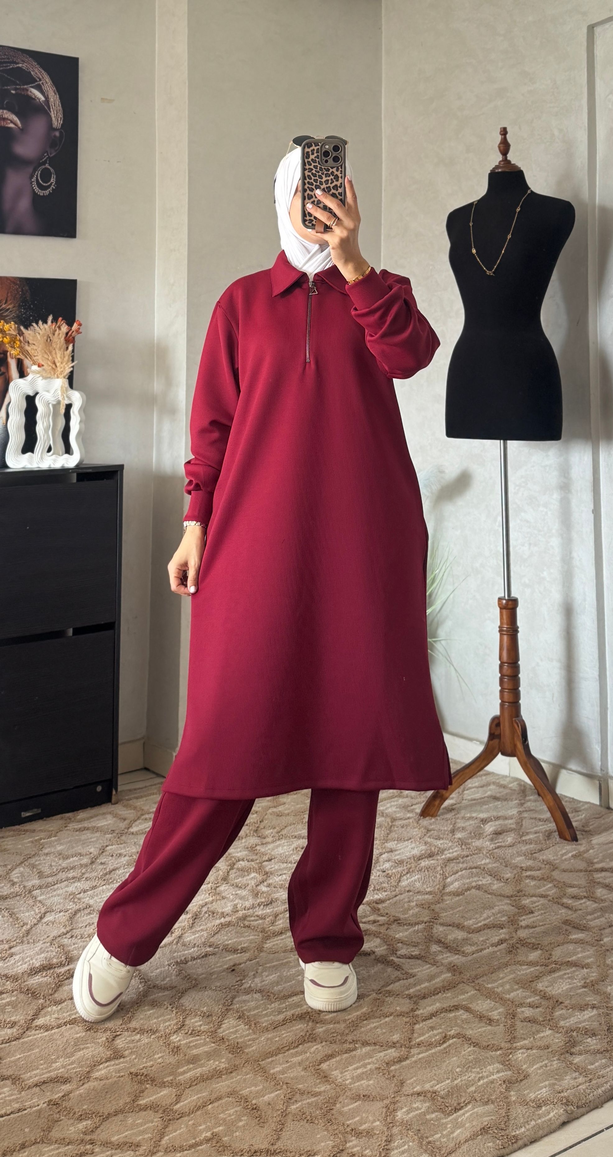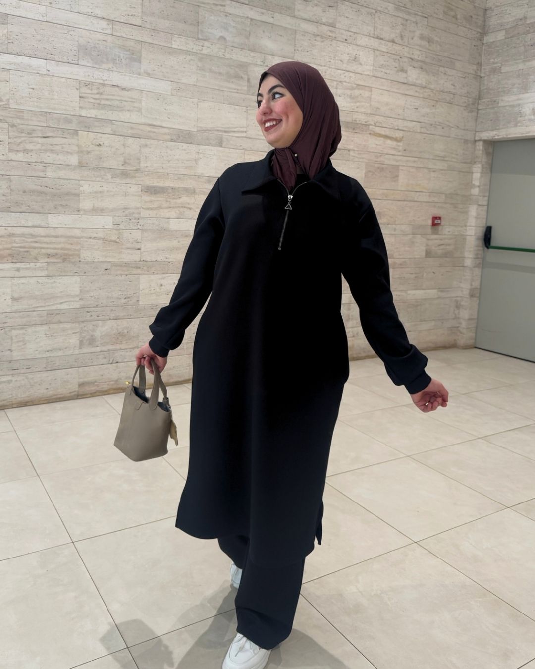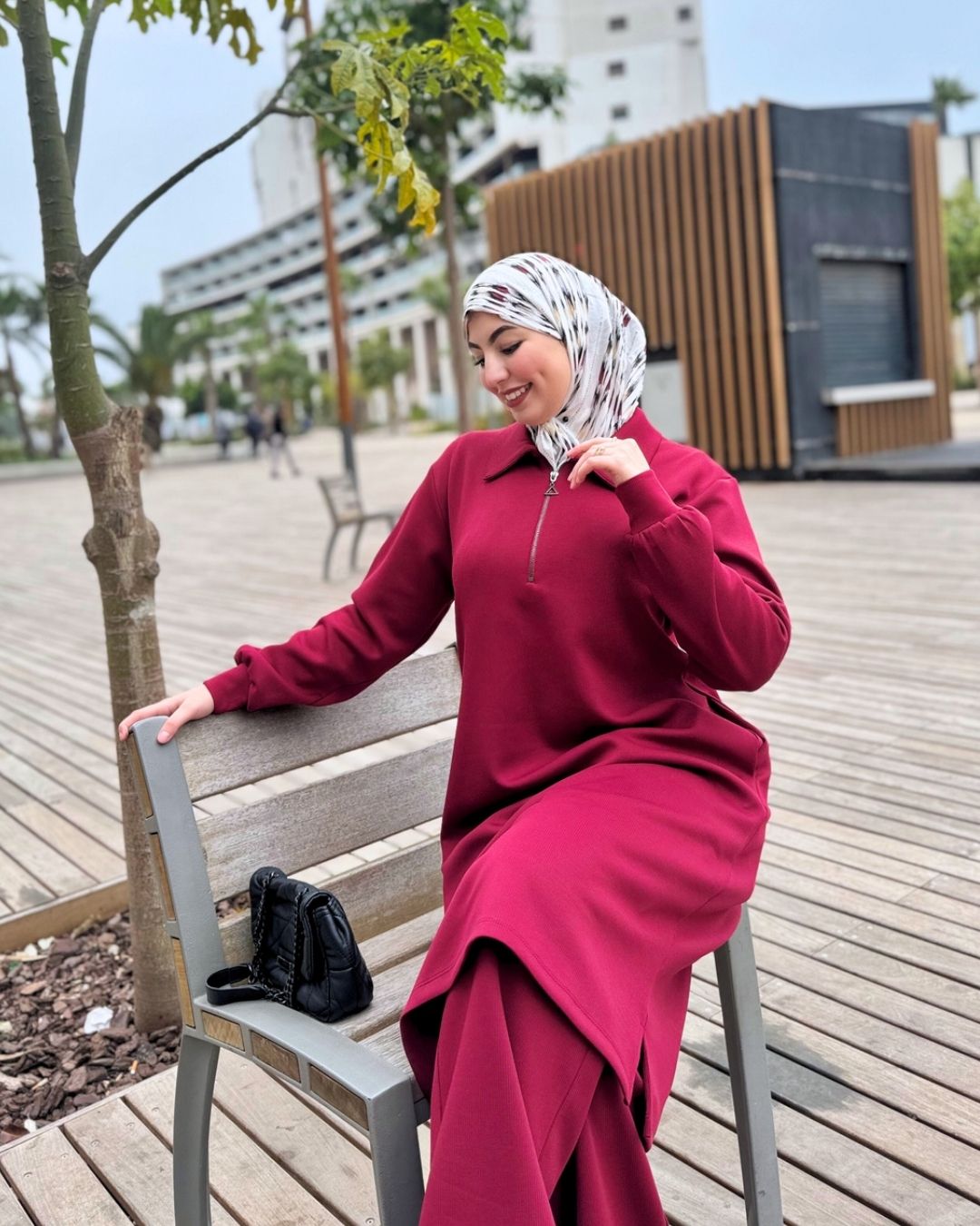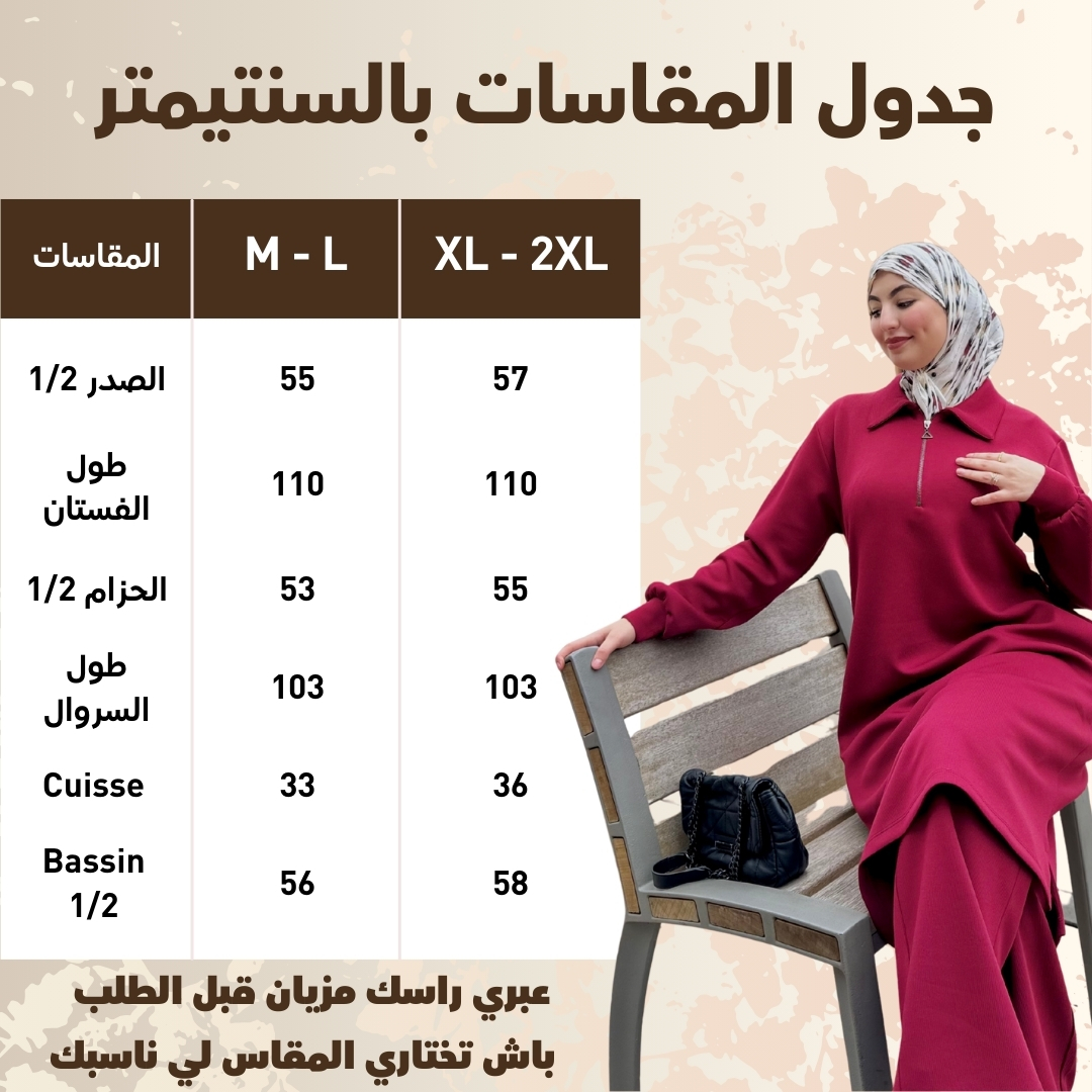 مصنوع من قماش Scuba Montoni المعروف بالثبات والنعومة، كيعطيك قصّة راقية كتلبس مزيان على الجسم وكتخليك مرتاحة طوال النهار. مناسب للخدمة، الخروج، التنقل اليومي، وحتى المناسبات البسيطة.